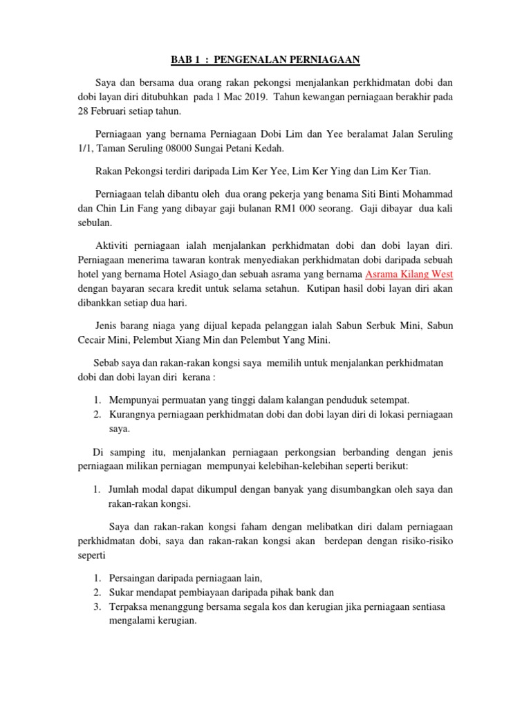 TP3 Melaksanakan pengiraan faedah atas modal. PENGENALAN PERNIAGAAN PERKONGSIAN Saya En. Perkhidmatan yang di tawarkan oleh perniagaan ini ialah cucian biasa cucian kering cucian tangan pengeringan pakaian dan menggosok pakaian.