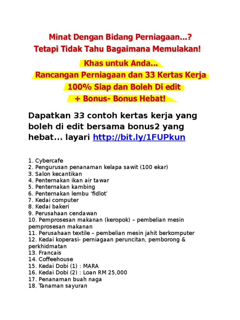 20 kertas kerja rancangan perniagaan atau business plan yang berjaya mendapatkan pinjaman dari institusi-institusi kewangan di Malaysia terutamanya SME Bank Bank Pembangunan PUNB MARA. Saya ada terjumpa satu laman web yang menghimpunkan koleksi kertas kerja yang anda boleh muat turun dan jadikan ia sebagai rujukan. Ramai juga dikaIangan sahabat bertanya skiranya ada contoh-cntoh rancangan perniagaan yng boleh dikongsi brsama.